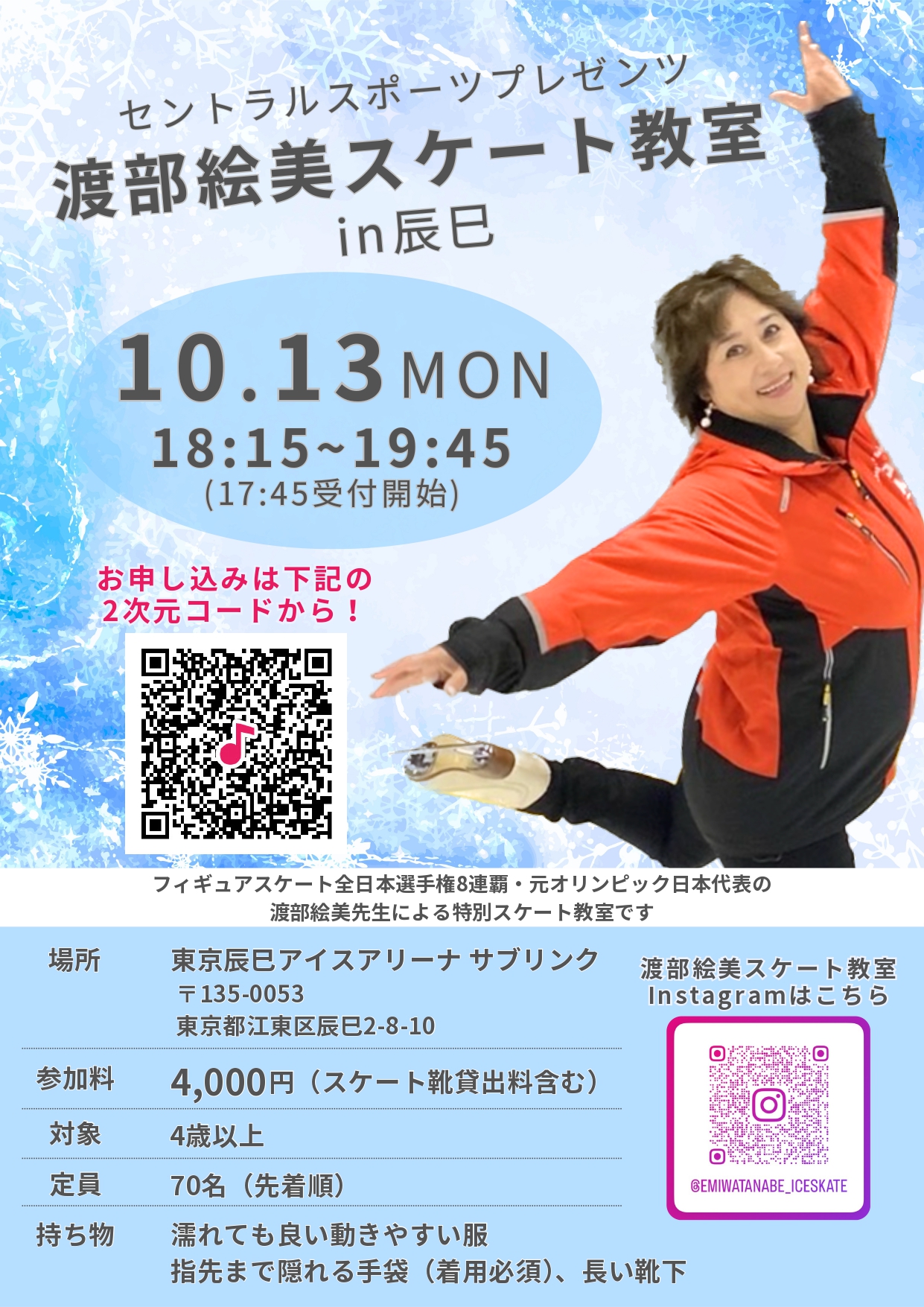 フィギュアスケート全日本選手権8連覇の渡部絵美コーチによるスペシャルスケートレッスンです!