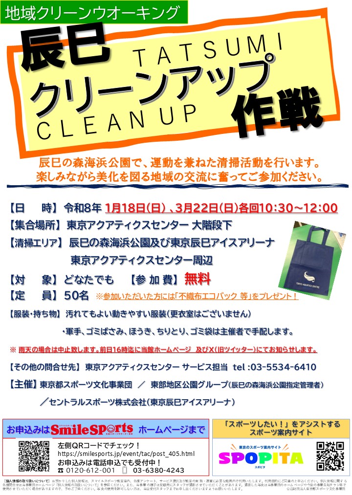 辰巳の森海浜公園をみんなでキレイに!地域クリーンウォーキング開催のお知らせ(1/18・3/22)