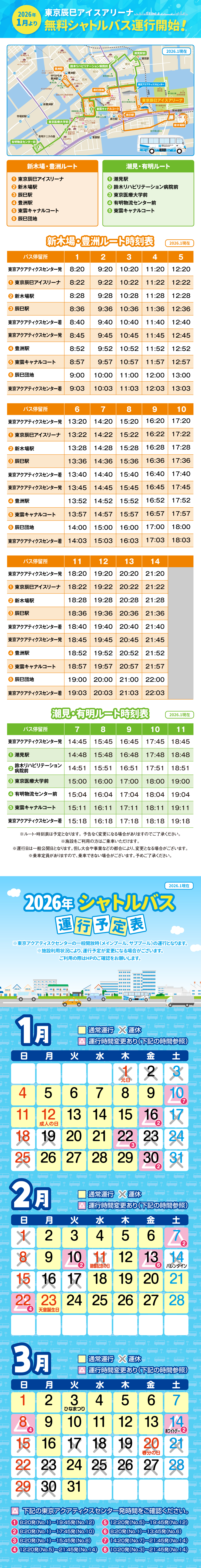 新木場・豊洲ルート/潮見・有明ルートの2ルートで運行します。