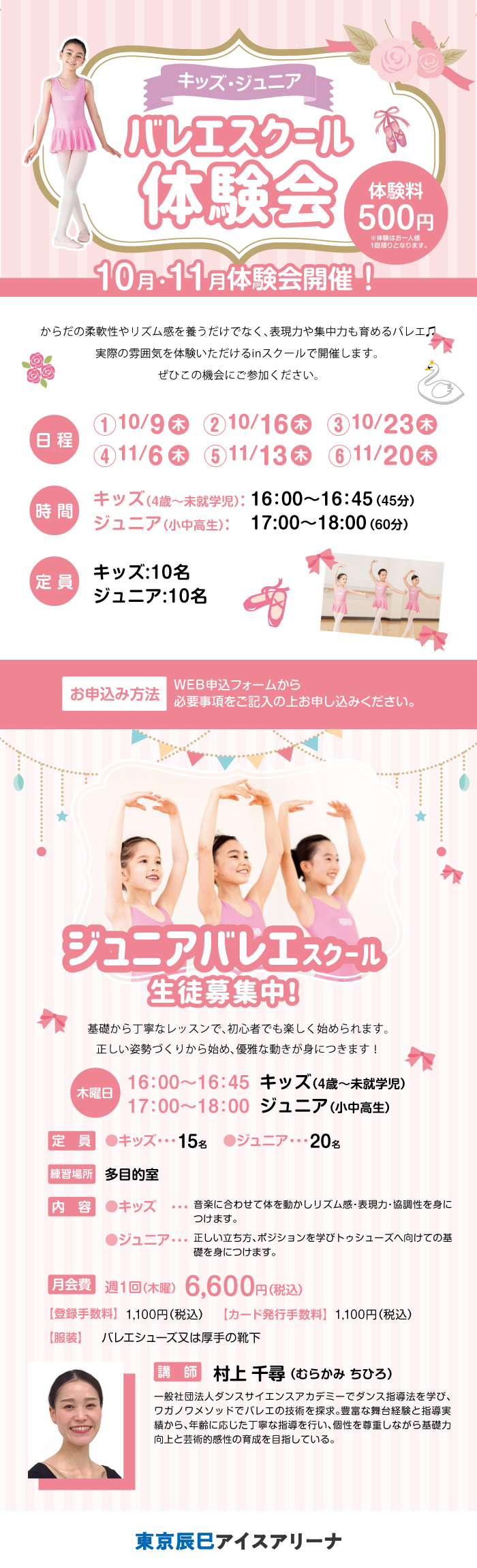 バレエに憧れる気持ちを、まずは気軽にワンコインで体験してみませんか? はじめてのお子さまでも安心して楽しめるレッスンです。 お申し込みは、このページ下部から簡単にできます!
