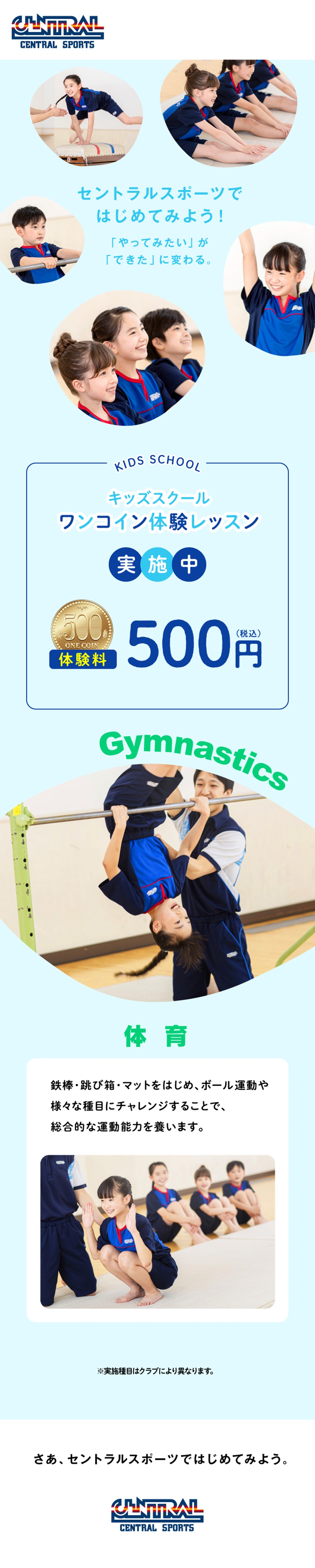 小学校体育の器械体操の種目を中心にレッスンを行います。